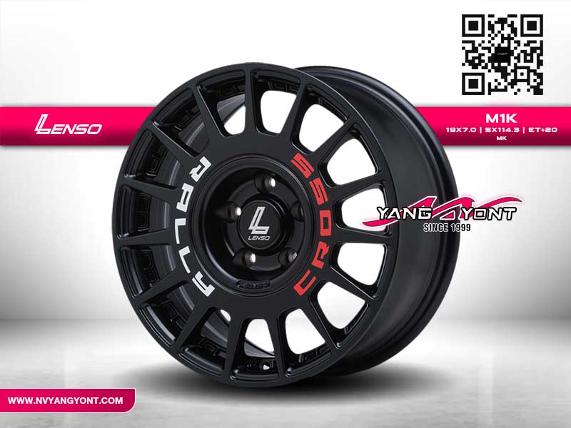 Lenso MX M1K ล้อแม็กดีไซน์แรลลี่สุดเข้ม แข็งแกร่งและมีเอกลักษณ์เฉพาะตัว ด้วยหน้ากว้าง 7 นิ้ว ออฟเซ็ต +20 และรูน็อต 5x114.3 เหมาะกับรถแนวออฟโรด รถกระบะ หรือ SUV ที่ต้องการลุคดุดันและมั่นใจในความทนทานของล้อ ลวดลาย RALLY CROSS ที่ขอบล้อพ่นสีแดงและขาวช่วยเพิ่มความเท่ไม่เหมือนใคร