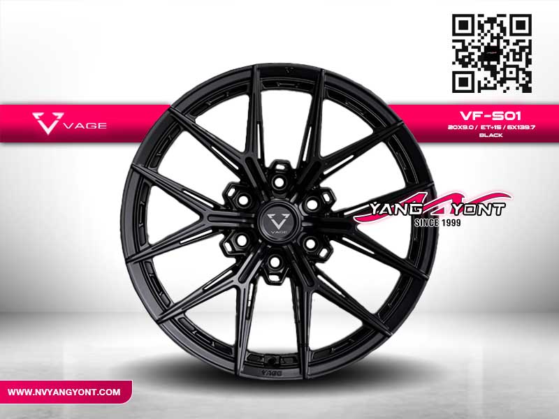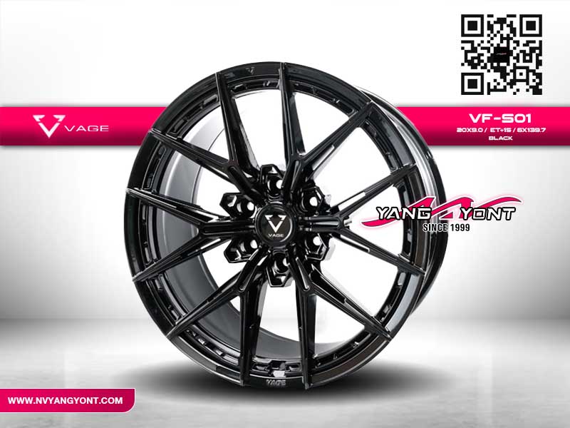 VAGE VFS01 – ขนาด 20x9.0 ET+15 | 6x139.7 | Black Gloss