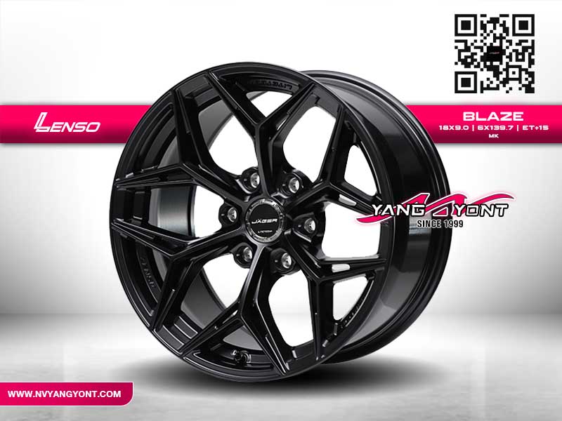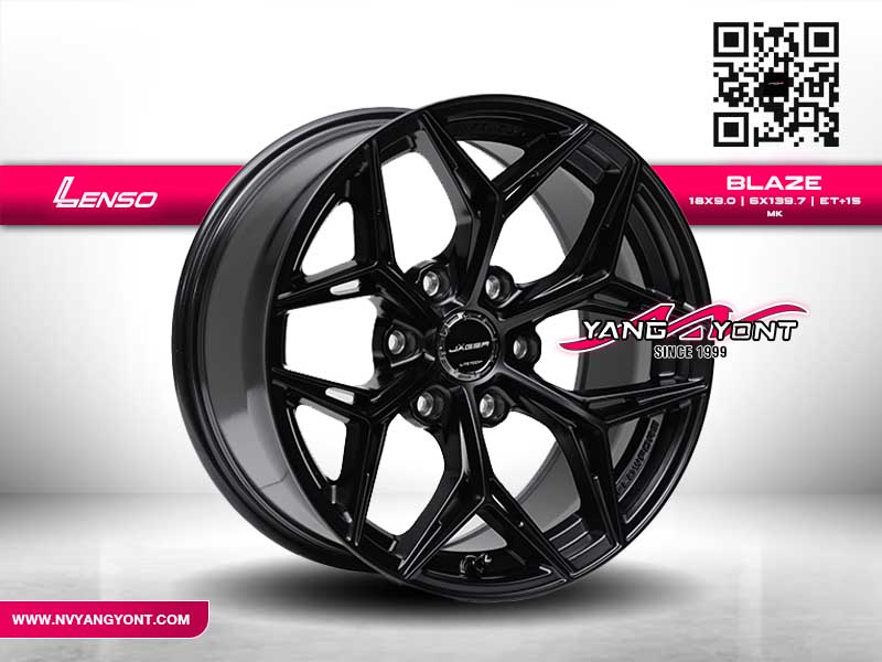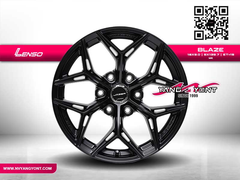 Lenso BLAZE 18x9.0 ET+15 6x139.7 MK ล้อแม็กสำหรับสายกระบะยกสูงและรถแต่งสายลุย มาพร้อมดีไซน์หน้าตัดเฉียบคม โครงสร้างแข็งแรง ผลิตจากวัสดุคุณภาพสูง ด้วยขนาด 18 นิ้ว ความกว้าง 9 นิ้ว ออฟเซ็ต +15 รองรับรถที่ใช้รูน็อต 6x139.7 เช่น Toyota Revo, Fortuner, Mitsubishi Pajero Sport, Isuzu D-Max และ Ford Ranger พื้นผิวเคลือบสีดำด้าน (MK) เพิ่มความหรูหราและความโหดให้กับตัวรถ เหมาะสำหรับการใช้งานในเมืองและออฟโรด พร้อมให้บริการติดตั้งโดยทีมช่างมืออาชีพที่ NV ยางยนต์