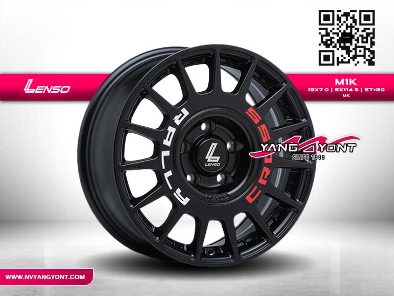 Lenso MX M1K ล้อแม็กดีไซน์แรลลี่สุดเข้ม แข็งแกร่งและมีเอกลักษณ์เฉพาะตัว ด้วยหน้ากว้าง 7 นิ้ว ออฟเซ็ต +20 และรูน็อต 5x114.3 เหมาะกับรถแนวออฟโรด รถกระบะ หรือ SUV ที่ต้องการลุคดุดันและมั่นใจในความทนทานของล้อ ลวดลาย RALLY CROSS ที่ขอบล้อพ่นสีแดงและขาวช่วยเพิ่มความเท่ไม่เหมือนใคร