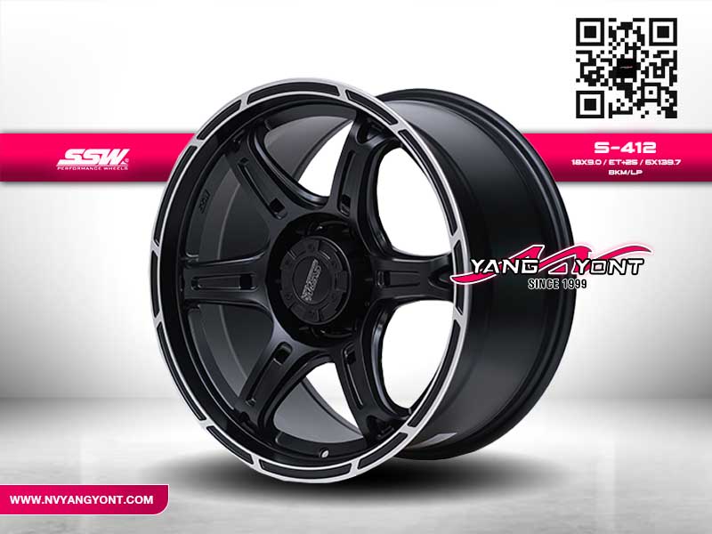 SSW S412 | ขนาด 18x9.0 | ET+25 | 6x139.7 | สีดำด้านกลึงขอบ BKM/LP